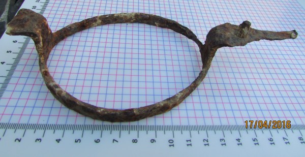Shoe Buckle Frame 1700 - 1750... Rectangular, Cast Copper Alloy, Convex Shoe Buckle with a drilled frame to accept the iron or steel chape, with symmetrical moulded rosettes decorating the centres of each bar at the ends and sides, small damage to one side, yet the frame is in good condition, with the centre moulded... Continue Reading →