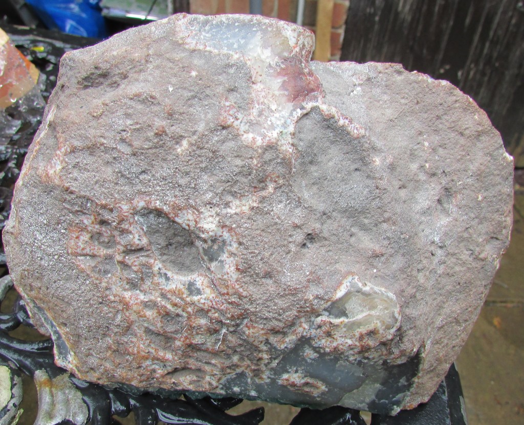 Shown here are my personal collection of Pudding-stones, & all found in the North of Essex… not far from the Essex & Hertfordshire borders…. one is the typical caramel-coloured pudding stone, the other is a light coffee colour whilst the third i had to have checked out, as a cross-reference because it represents silica the same colour as concrete, but it is a lighter and more harder conglomerate…
